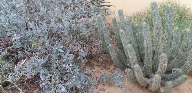 ד"ר אורי פרגרמן-ספיר, מדען הגן שערך לנו את הסיור והפליא בהסבריו המלומדים, סיפר לגבי החלקה הדרום אפריקאית שגדלים כאן צמחים המתאימים למעשה לאקלים שלנו חסכני מים שזה צו השעה.