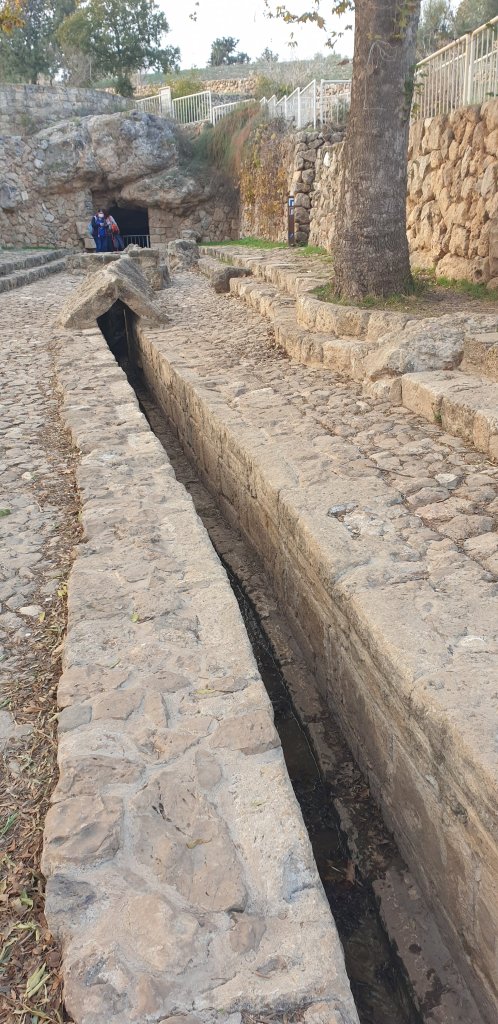מהניקבה יוצאת אמת מים שחלקה מקורה, המסתיימת בבריכת אגירה גדולה ששימשה כבריכת רחצה וגם כבריכת אספקה לבוסתנים והשדות באזור ולבית המרחץ.