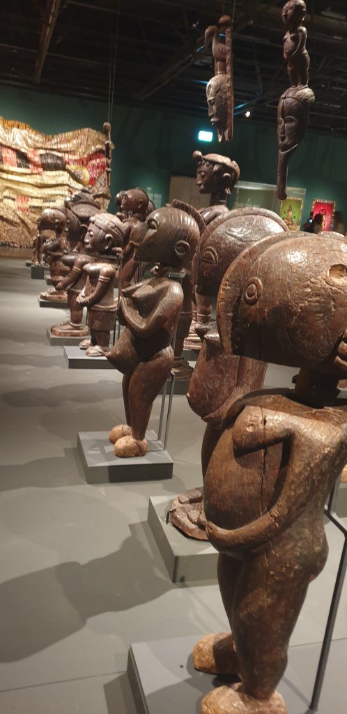 לצד כל אלה מוצגים בתערוכה פסלים אתנוגרפיים נדירים המפגישים אותנו עם השורשים המקוריים או סוג של אבות רוחניים, שנתנו השראה לאמנים מודרניים, ומציבים מראה מול כפיליהם העכשוויים. פסלים אלה, שחלקם נשמרו בגניזה ביער קדוש, נוצרו בידי גדולי האמנים המסורתיים שפעלו במאה ה־20 במערב אפריקה. רבי האמנים, שהיו בקיאים ברזי הפולחן ופעלו על פי כללי המסורת, הוסיפו להם לעיתים חומרים שהעניקו להם כוחות על־טבעיים. עם מסירת היצירה לקהילה, היא עברה תהליך של הקדשה: הפסל, שצורתו אנושית, הפך לכלי קיבול לאל או לרוח. היצירות מנכיחות לצופים את הרוחות המגינות של האחווה הסודית של הנשים.