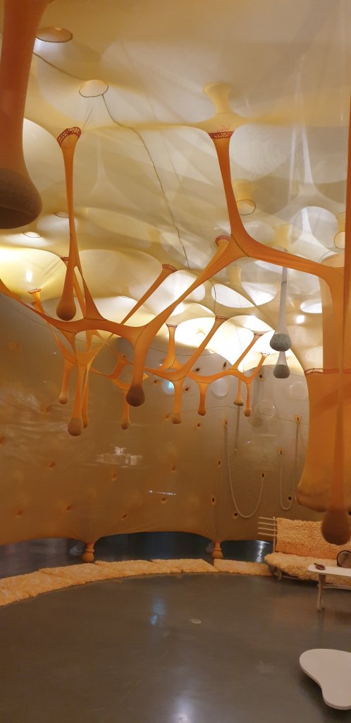 ארנסטו נטו Ernesto Neto, מהאמנים החזותיים הבולטים בעולם כיום, ידוע ביצירת מיצבים ופסלים מחומר דמוי רשת שהוא ממלא בחפצים שונים כמו תבלינים, חול וקונכיות. ארנסטו משלב צורות וחומרים אורגניים המערבים את כל חמשת החושים, ומייצר תפיסה חדשה של הגבולות בין יצירת אמנות ובין הצופה.