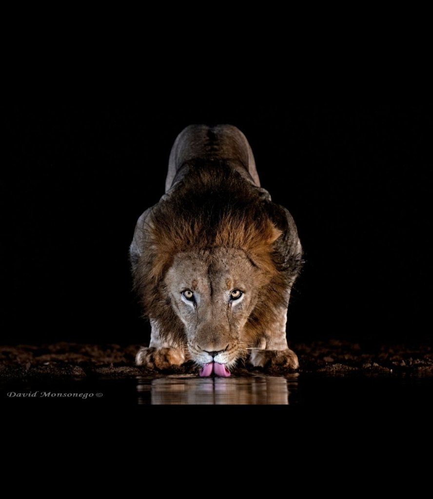 מונסונגו מתאר את התחושה לאחר המפגש עם מלך האריות: "לפתע מגיח מהחושך בצעדים בטוחים של מלך אריה בעל רעמת שיער מפוארת, מגיע לקו המים ומתחיל לשתות. הכול עובד באופן אוטומטי אתה פועל על פי אינסטינקטים שנטמעו בך. אני מרגיש במחזה בו אני והאריה משתפים פעולה. מדי פעם כשאני מסיר אם עיניי מעינית המצלמה ומתבונן באריה שהביט בי, העיניים נפגשות בגובה שווה, אני במרחק של שני מטר ממנו בערך, עוצמתו עולה עשרות מונים מהמבט דרך העדשה, הוא גדול פי כמה והוא כל כך מרשים. אני מתרגש מהסצנה, רוצה להכיל אותה, ושב לעיניים שמרחיקה אותי ממנו… לא, אני רוצה בקרבתו, הלוואי שיכולתי לחוש את חום גופו, זה עצום, כמו אותו ילד שמתגנב לפארק היורה ופוגש ממותה."