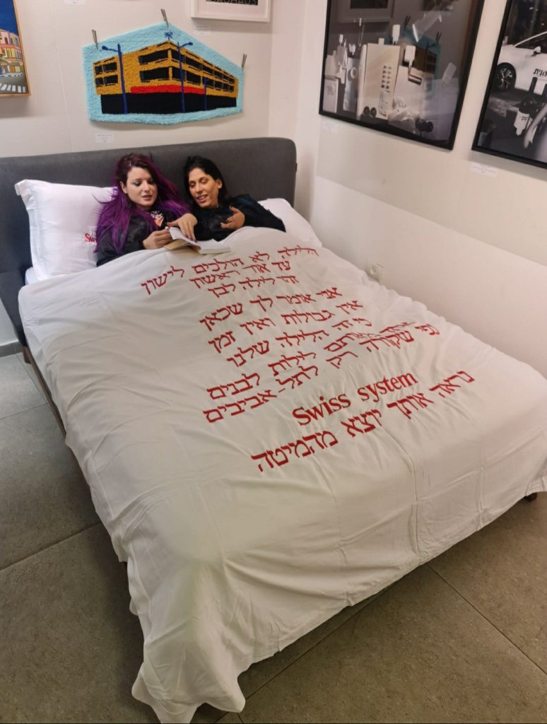 במרכז הבית- התערוכה תוצג מיטה זוגית בה ישכבו יחדיו שתי בנות , כאשר הן מכוסות בשמיכה ,עליה כתוב :