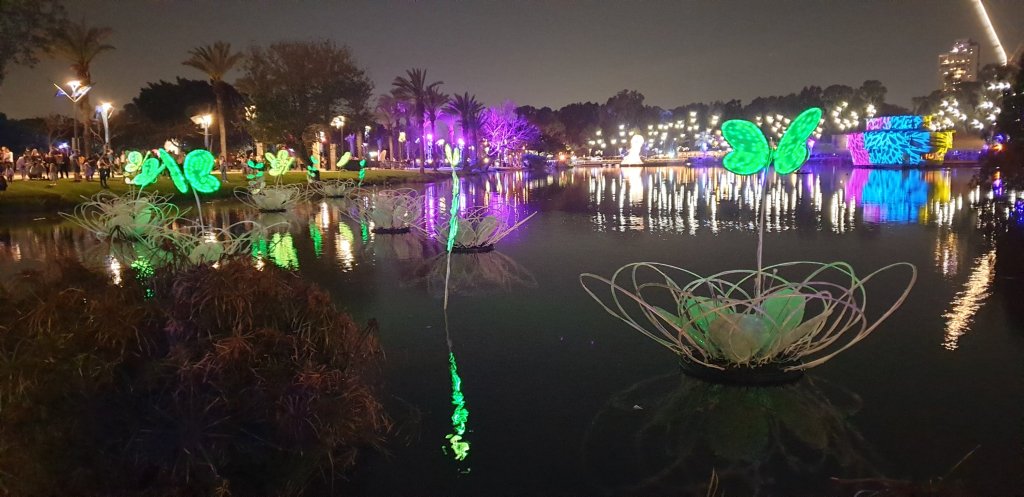 במתחם אמנות האור בפסטיבל "אביב של צבעים" יוצבו 25 מיצגי וידאו ואור ענקיים תחת הקונספט פריחת האביב, כגון: גינת לילה פורחת, ציפורים שהגיעו מארצות קרות, פרפרים שבקעו מהגולם, התחדשות וצבעוניות באוויר ועוד. החל מהשעה 19:00 ובכל שעה עגולה יופעל מיצג אור אשר חובק את האגם ומסונכרן לפס קול שנערך במיוחד עבורו. מיצג האור יתפרש על שטח של כ-200 דונם ויורכב משני מיליון נורות לד וכ-30 מקרני מסוג "אימג'ים פאני", אשר מתמחים בהקרנה על מבנים ומשטחים לא סטנדרטים, כדוגמאת עצים, וברזולוציות איכותיות.