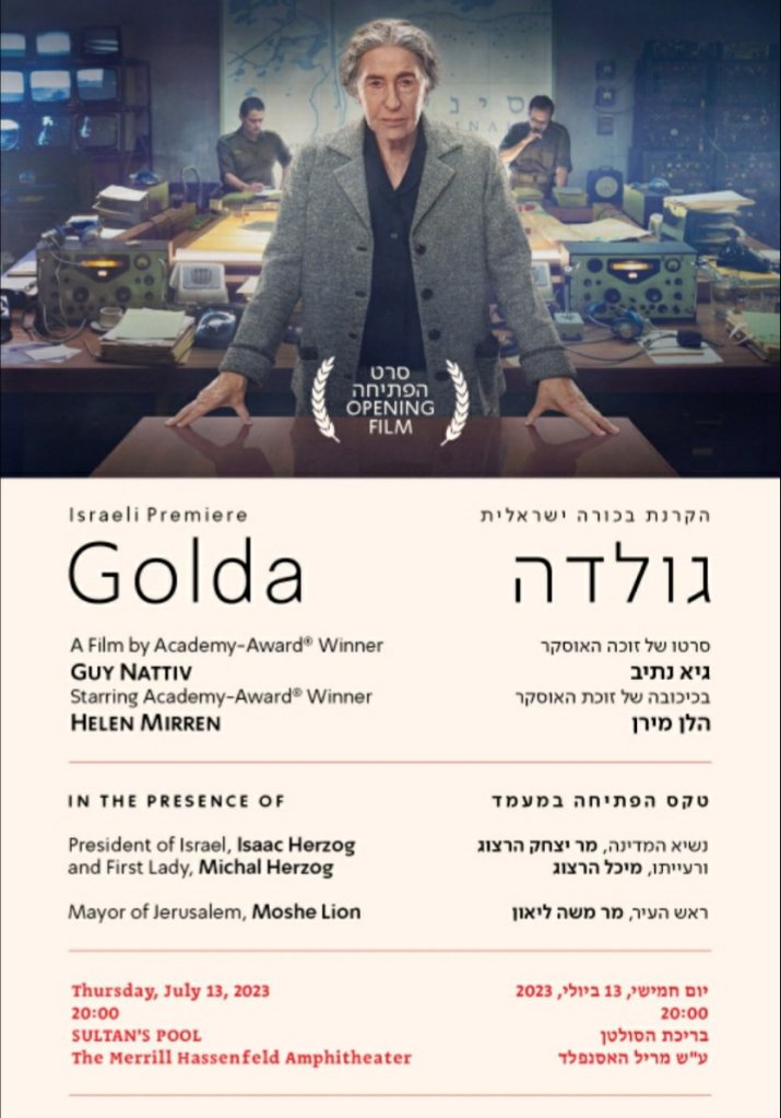 פסטיבל הקולנוע ירושלים, אירוע הקולנוע המוביל בישראל, יתקיים בפעם ה-40 בין התאריכים 13-23 ביולי. הפסטיבל ייפתח בבריכת הסולטן עם הקרנת הבכורה של "גולדה", סרטו של זוכה האוסקר גיא נתיב בכיכובה של זוכת האוסקר הלן מירן.