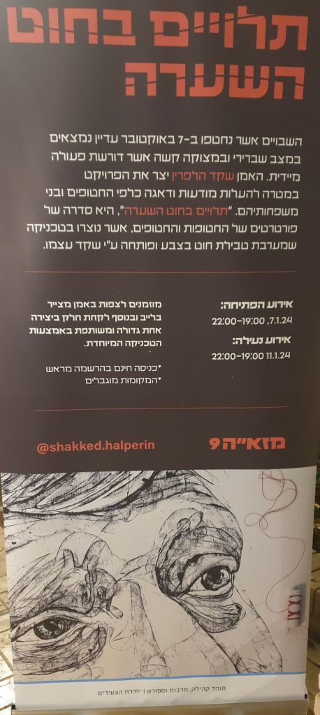 עיריית תל אביב- יפו תפתח ב-7 בינואר את תערוכת "תלויים בחוט השערה" של האמן ד"ר שקד הלפרין, מפתח טכניקת החוט הטבול בצבע, בה יוצגו פורטרטים של החטופים והחטופות אותם יצר האומן בטכניקת חוט בצבע כחלק מהמאבק להחזרת החטופים והחטופות.