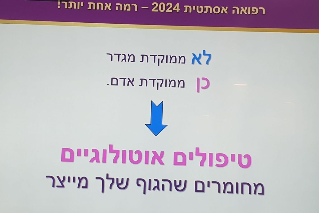 כלומר טיפולים אוטולוגיים מחומרים שהגוף מייצר כמו מהדם, שבתוכו יש חלבונים גורמי גדילה וכשמזריקים אותם לרקמות הם מתקנים רקמות פגועות. או מהעור תאי אב זה תאי גזע שגם אותם ניתן להזריק,יש גם תאי גזע משומן.