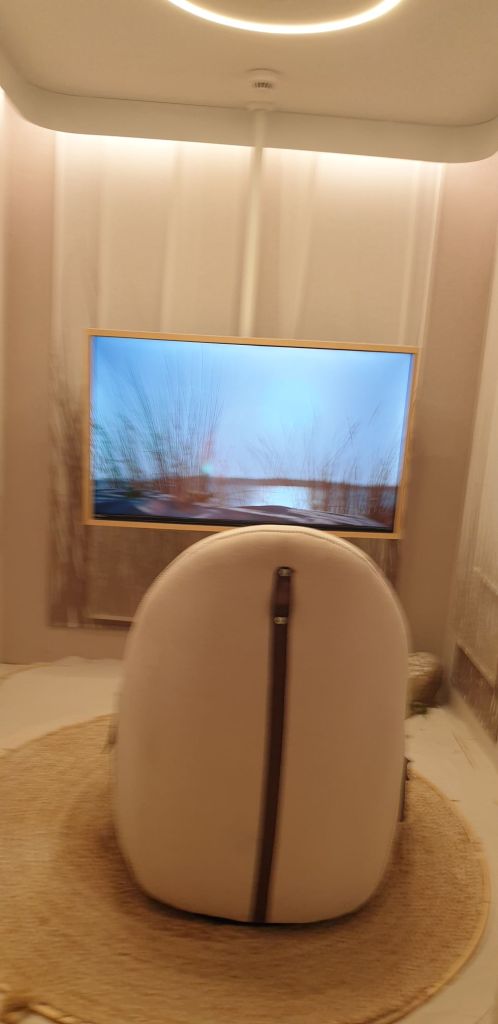כניסה לקפסולה בטכנולוגיית BrainVibes – חוויה רב חושית שמפעילה גלי מח מיוחדים. הפעלה זאת יוצרת נתיבים