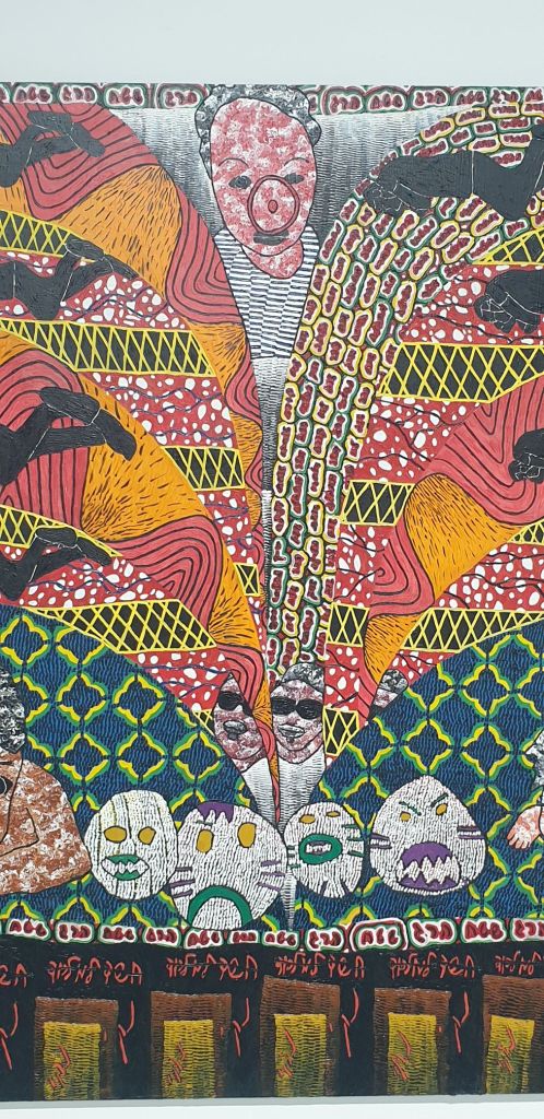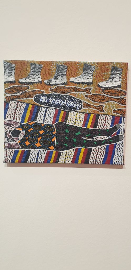 הציור של האמנית זויה צ'רקסקי-נאדי, מוצג החל מהחודש באוסף הישראלי, לאחר שהתקבל כמתנה למוזיאון מיוראי דוד לזכר הוריו, סידה (לבית טובוביץ) ואלכסנדר דוד, ניצולי אושוויץ. בעקבות מתקפת הטרור של חמאס בשבעה באוקטובר, יצרה האמנית סדרת רישומים עזי מבע של מראות האסון. הרישומים האינטימיים בגודלם החזיקו עוצמה מונומנטלית ובעקבותיה בחרה להגדיל אחד מתוכם לציור רחב ממדים. הציור מחולל בו זמנית את תנועת הנשים הנסות על נפשן ואת הקפאתם של רגעי אימה קשים מנשוא העתידים להיות מוטבעים לנצח בהיסטוריה היהודית והמקומית.