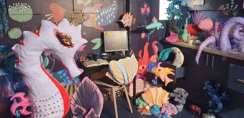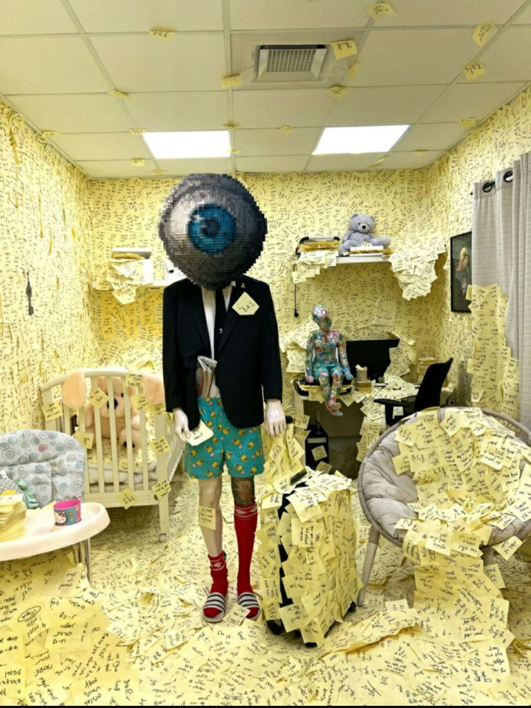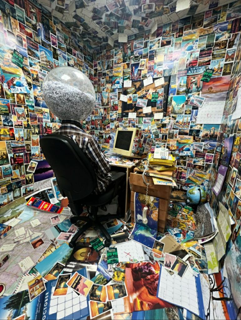 האמן רובן קרפטיאן – #tag יצר משרד אפרורי שמזכיר לכל צופה שגם בתוך השגרה האפורה יש מקום לילד הפנימי שלא רוצה להתבגר וחבוי בכל אחד מאיתנו – פיטר פן.