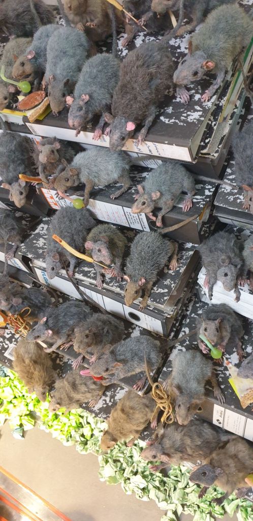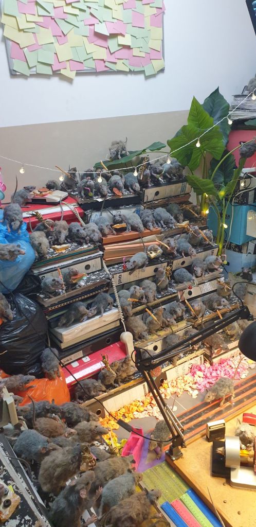 האמנית מורן גרוס יצרה מעל ל 400 עכברים שהשתלטו על משרד ישן והפכו אותו למרוץ עכברים שמשמש כמטפורה לחיים שלנו בני האדם.