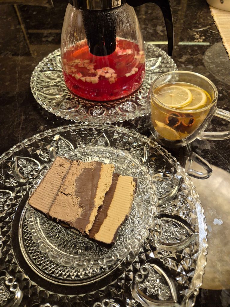 ומה יותר נעים טעים ומחמם את הגוף והנפש מאשר להכין תה חם ומהביל בסגנונות שונים כגון קנקן תה סיידר תפוחים או תה ירוק עם מקלות קינמון, פרוסות לימון ופרוסות דקות של ג'ינג'ר טרי, להגיש חם לצד פרוסות מהחלוה הטריקולורית המשובחת של חברת אחוה ואז גם אין צורך להמתיק את התה. החלוה רכה נימוחה וטעימה וכל ביס הוא נהדר ומתמוסס בפה.