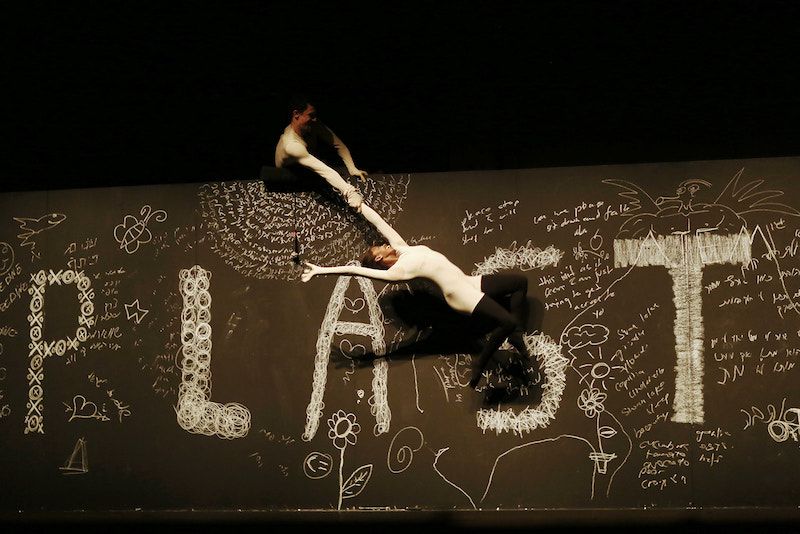 השימוש במחזה נוטל מהצופה את השהיית המציאות המיוחלת. הזמן באולם ומחוצה לו הוא אותו הזמן. הרקדנים אינם אלא הגופים שהם, והקהל שותף גורל נוכח ופעיל ברגע הזה.