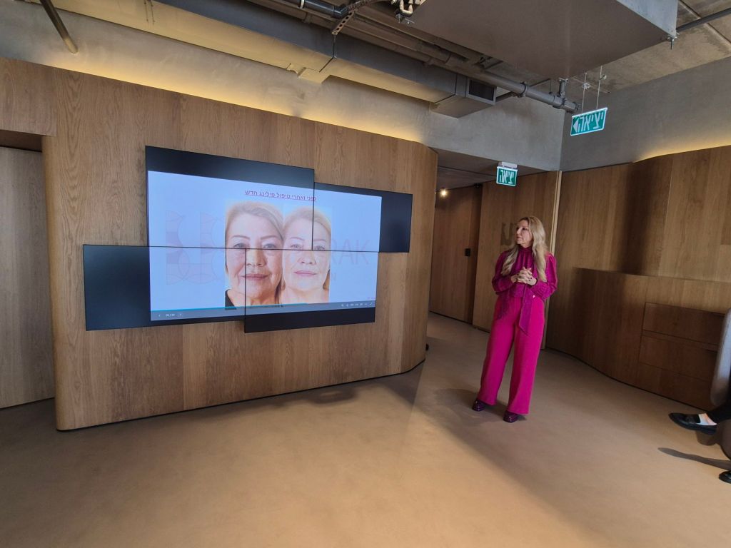 הבוקר הגענו לקליניקה של ד"ר לריסה ברק בסניף הראשי והיוקרתי שלה הנמצא במרומי קומה 20 בביניין היוקרתי של חג'ג' ברחוב הארבעה בתל אביב. הביניין עוצב על ידי מעצב העל ג'ורג'יו ארמאני שהיה מעורב אישית בעיצוב הפנימי ואף הגיע לישראל במהלך עיצובו.