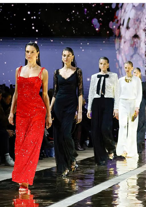 תצוגת אופנה מר קיין צילום יחצ חול פברואר 2025כמו כן כיכבו בתצוגה שמלות ערב ושמלות צמודות ומרשימות עשויות בדים נוצצים ואלמנטים שקופים. הפינאלה, עם שמלה רצפתית משובצת פאייטים, שילוב בין זוהר, ברק וסופיסטיקציה מודרנית.