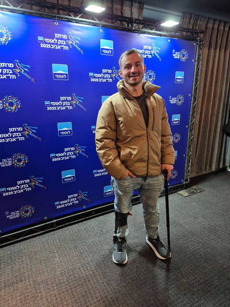 רס"ן אביתר זיתוני, מ"פ בביסל"ח שנפצע באורח אנוש ואיבד שישה מלוחמיו בקרב בכיסופים ב-7 באוקטובר 2023, ישתתף במקצה חצי המרתון עם אופני יד: "בשנה וארבעה החודשים האלה עברתי הרבה. ב-7.10 קפצתי מהבית ונלחמתי עם הפלוגה שלי. קרבות מאד קשים. לאחר לחימה ממושכת קבלתי צרור וחיכיתי לפינוי זמן רב. אבדתי הכרה ולאחר 12 יום התעוררתי לאחר איבוד דם רב מהעורק הראשי. אבדתי שישה גיבורים יקרים לי. המרוץ הזה הוא גם עבורם. הם עשו המון כדי שאתם תשבו כאן. אחרי מרץ 2024, הגיעו מארגון נכי צה"ל עם אופני ידיים. החלטתי שאני עושה את החצי מרתון עם אופניים אלה ועם עוד חברים שנפצעו. עבורי זו התרגשות גדולה. יש עוד פצועים רבים ולנו זה חשוב שתומכים בנו, להבין שלא סתם נפצענו. השתתפי במרוצי עבר בריצה, כעת זה יהיה בתכנית קצת שונה. אנחנו הפצועים נגיע כי לנו זה חשוב ואנחנו רוצים לחזור לחיים האמיתיים שלנו. הריצה זה הנפש. זה מה שעוזר לנו לנצח".