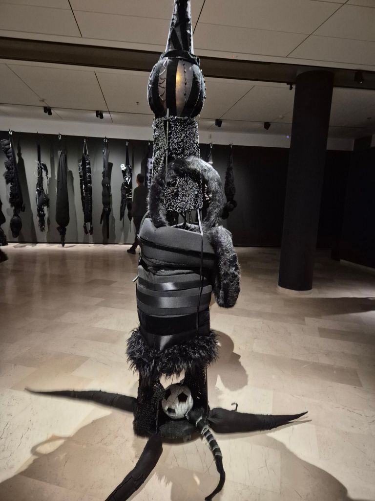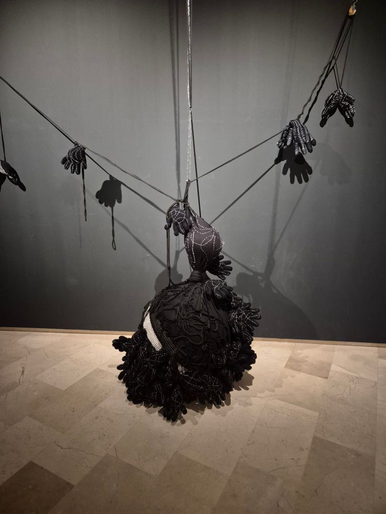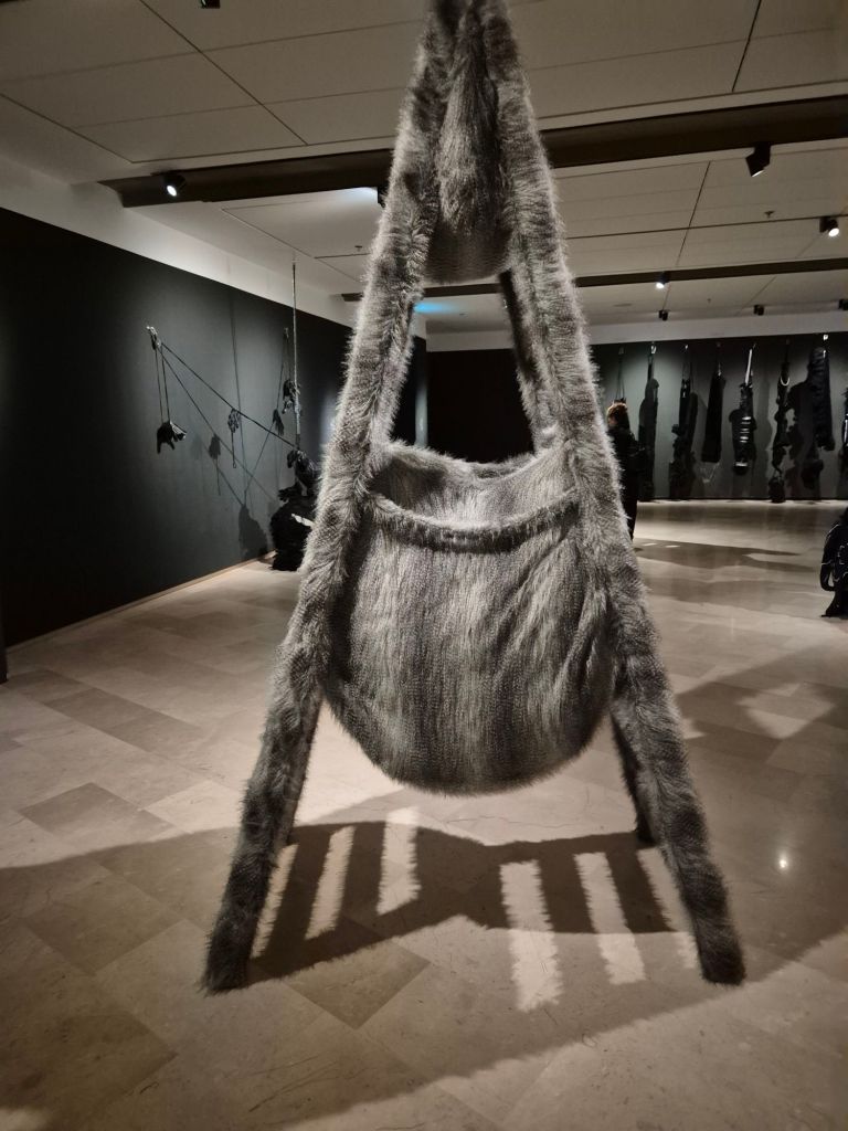 האמנית מקיימת דיאלוג עם זרמים אמנותיים כמו סוריאליזם, דאדא והארטה פוברה האיטלקית, תוך שימוש בחומרים "דלים" ויומיומיים. בעבודותיה ניכרות פעולות רקמה ותפירה ידנית־אינטואיטיבית, ושימוש בפרווה, עור, שיער סינתטי, חרוזים ובדים שונים. על אף השימוש ברדי־מייד בדימוייה, השחור אינו קודר, הוא מכיל קורטוב של שובבות, שמחת חיים וקישוטיות, ונפרם לעיתים מקווקווי התפרים הלבנים שמבצבצים החוצה לנקודות של אור. *התערוכה מלווה בקטלוג, עיצוב: סטודיו פורמנטה