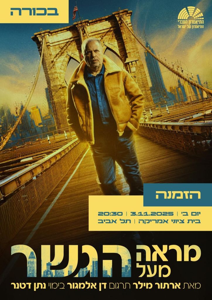 מראה מעל הגשר התאטרון העברי -צילום יוסי צבקרההפקה הנוכחית של התיאטרון העברי מציגה צוות שחקנים מוביל, ביניהם נתן דטנר בתפקיד אדי קרבונה, אלי גורנשטיין, נילי צרויה, אודיה ירון, אורי זלצמן וגל פופלר. המחזה, הנחשב לאחד הטובים ביותר של מילר, עוסק בשאלות מוסריות של צדק ואי-צדק, חוק והפרת-חוק, אחריות והתחייבות, ובמחיר הפרתן.