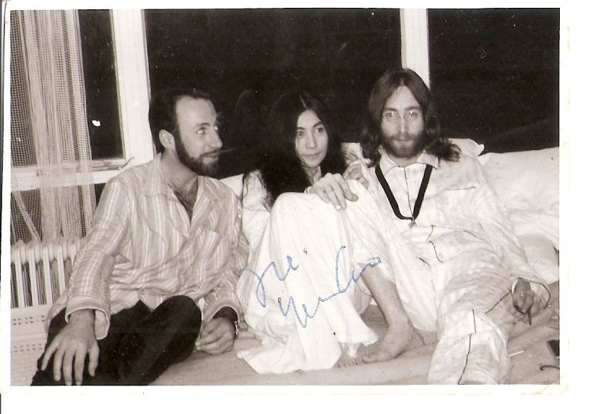 ב-1969 זכה העיתונאי, הפזמונאי, ולימים ח"כ עקיבא נוף למפגש נדיר עם ג'ון לנון ויוקו אונו, ששהו במלון הילטון באמסטרדם במפגן למען שלום עולמי. נוף, בפיג'מה, נכנס למיטה עם לנון ואונו והקליט ראיון שבו פירטו את דעותיהם על שלום, על תנועת ההיפים, על אלוהים ועל אהבה.
