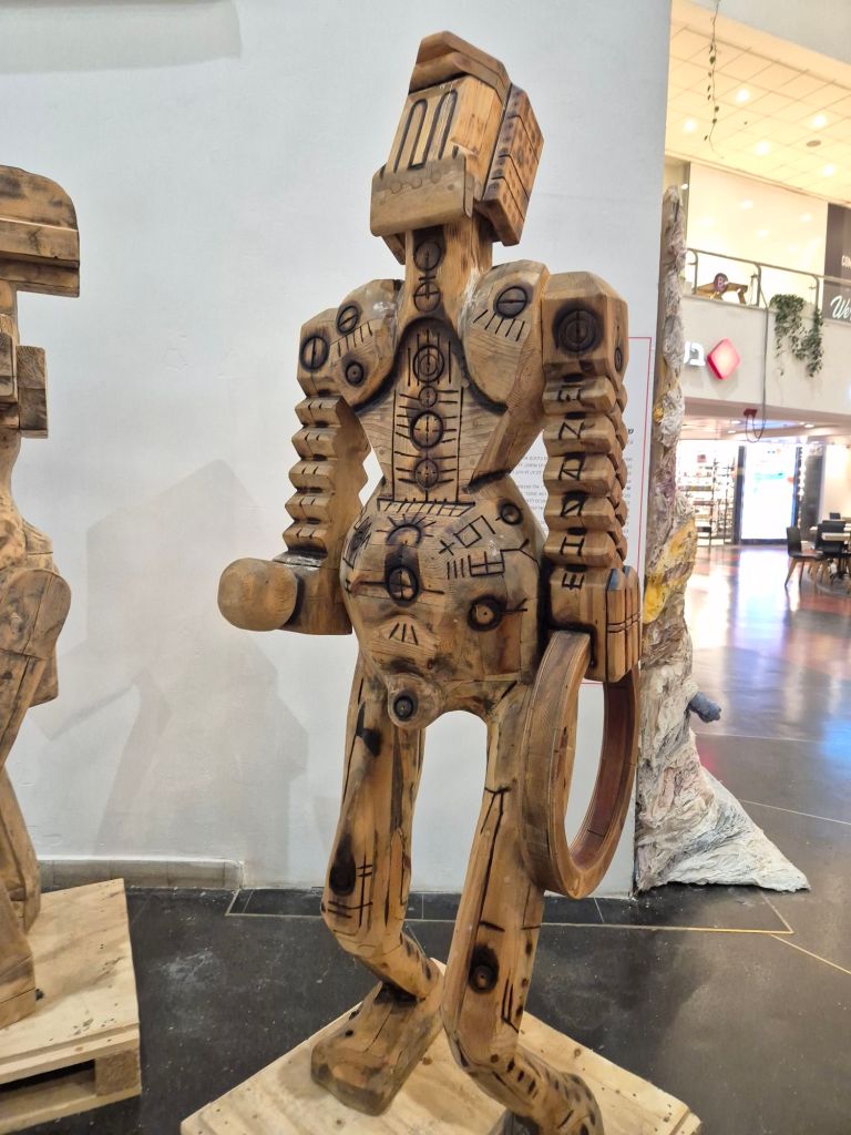 שי עיד אלוני מציג את סדרת הפסלים "עקבות של זיכרון", חמישה פסלים גדולים מעץ גושני שנאסף מרחובות העיר