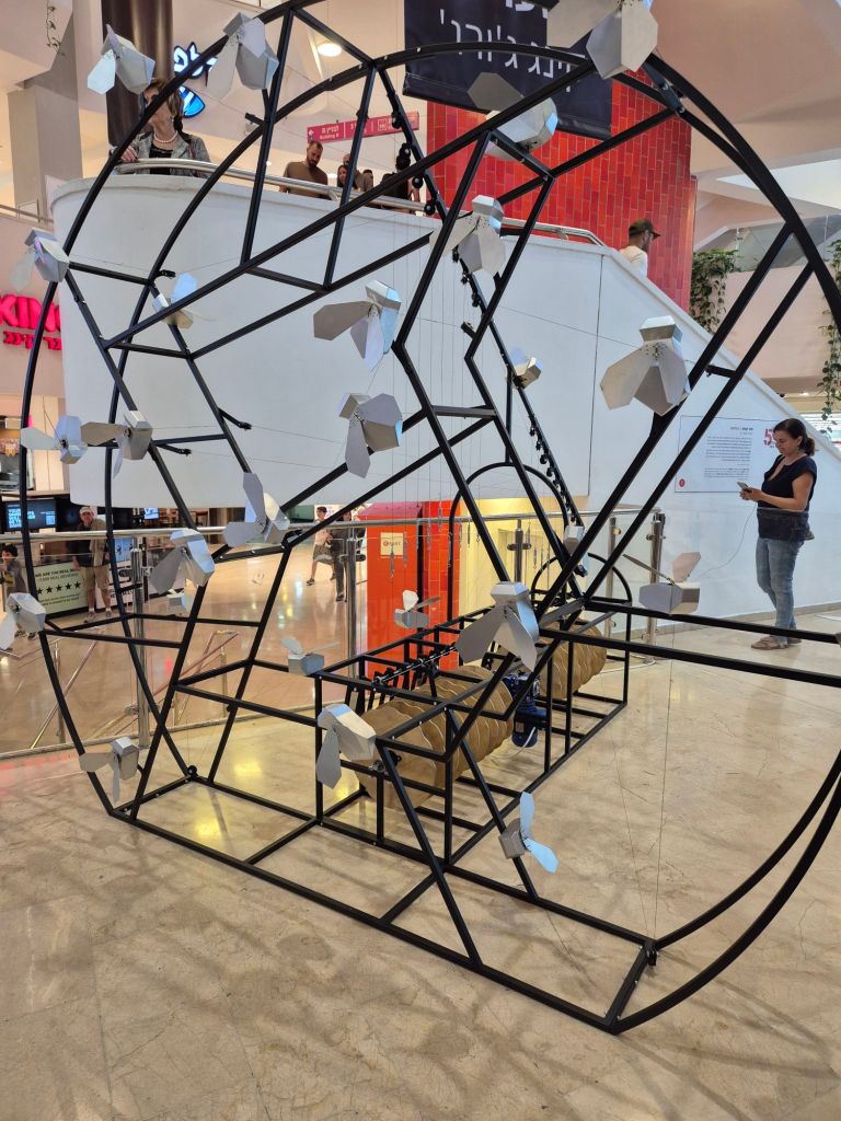 ושחר קושט מציג פסל קינטי של הדבורים הנעלמות.