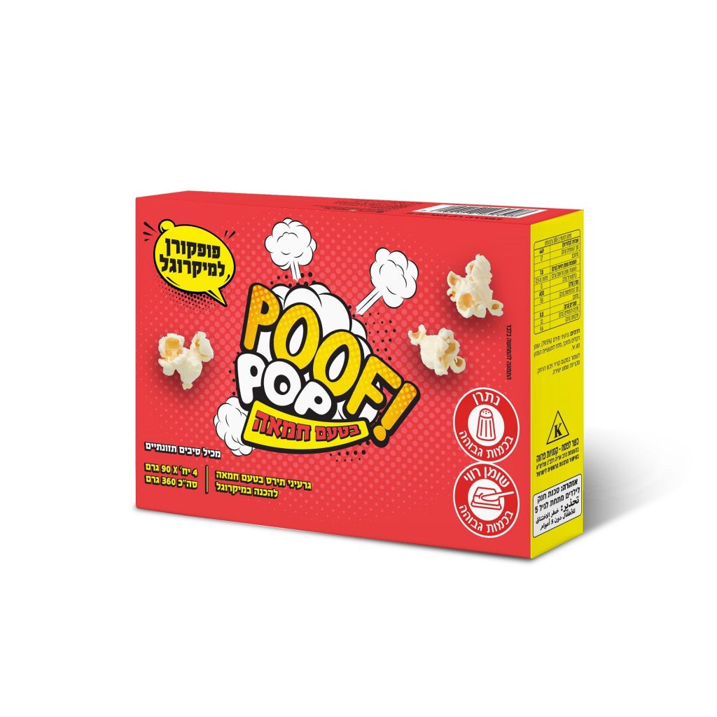 מותג החטיפים המלוחים POOF (פוף) המציע מגוון חטיפים רחב במרקמים וטעמים שונים, מתרחב ומשיק קטגוריה חדשה: סדרת פופקורן למיקרוגל, תחת השם: "POP-POOF" (פוף-פופ).