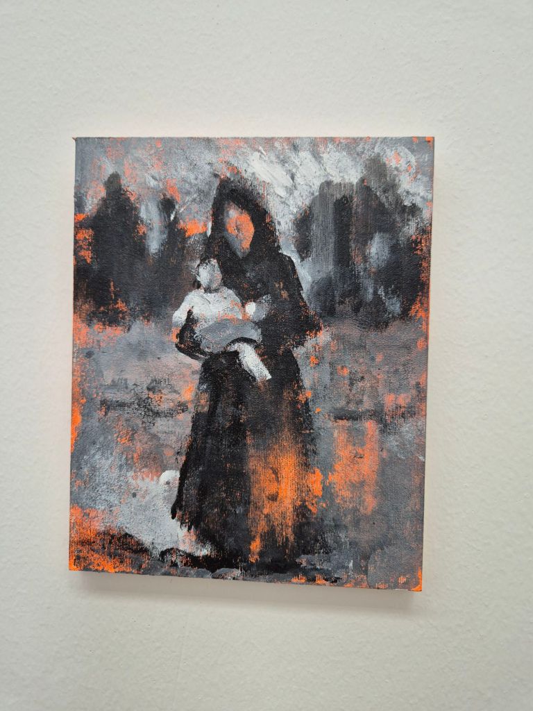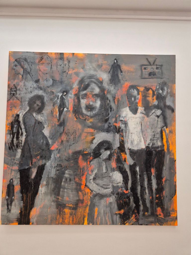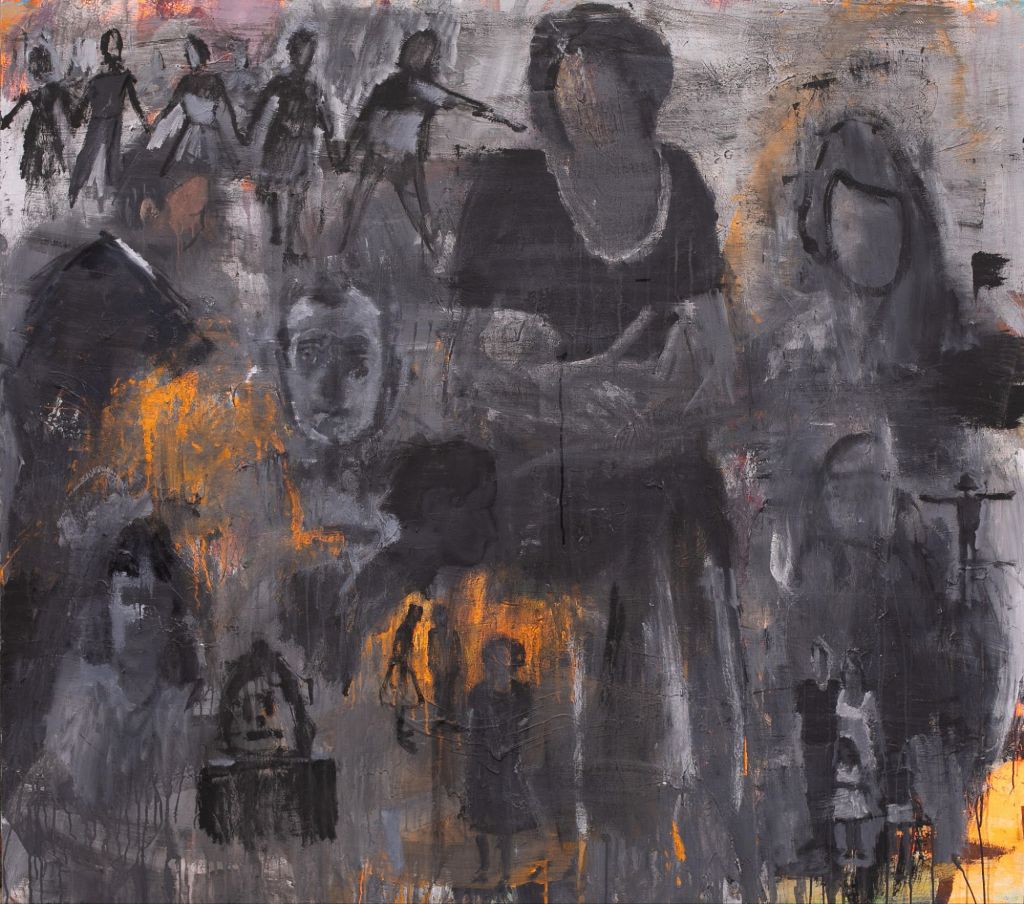 הציורים בתערוכתו החדשה של עידו מרקוס מפורקים, בלי סוף ובלי התחלה. הם כוללים אוסף של דימויים אקספרסיביים: אישה בהריון, צילום כיתתי, קבוצה של אנשים רוקדים, שני אנשים מתחבקים, אישה מחזיקה תינוק. אלה הן מחוות, מחיקות וחזרות של דימויים שעלו שוב ושוב מהאוב, ואשר הופעתם יחד מציפה את האסון, הכאב והחרדה של התקופה הנוכחית.