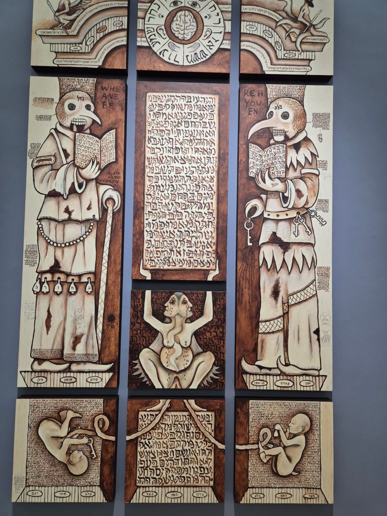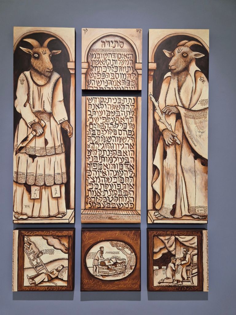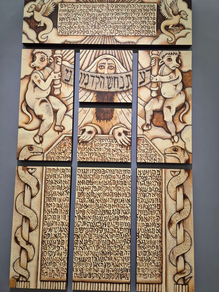 תערוכה זו, שמתחילה עם שערי ספרים יהודיים מתוך אוסף היודאיקה של המשכן, מייצרת מרחב חזותי ותוכני מלא סודות והצפנות שמחבר בין הנבואה של רועכם לבין האלימות והחורבן של המציאות העכשווית.