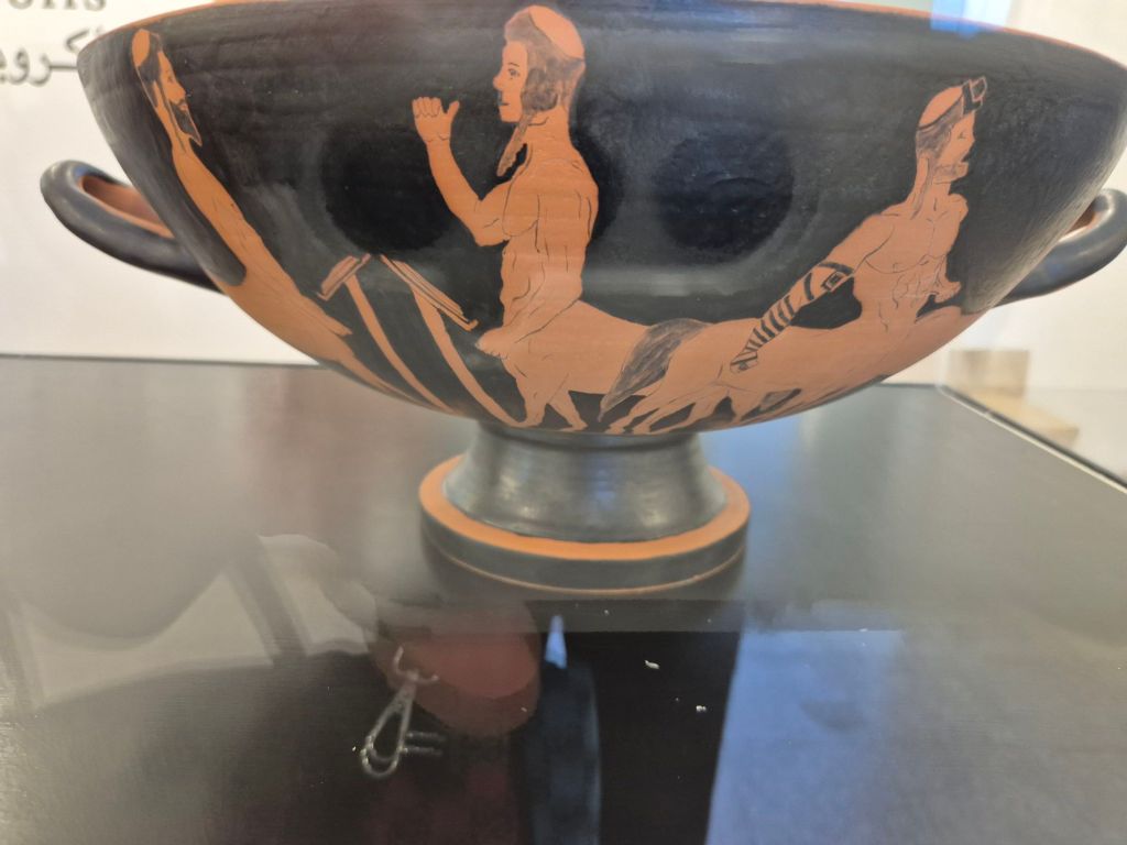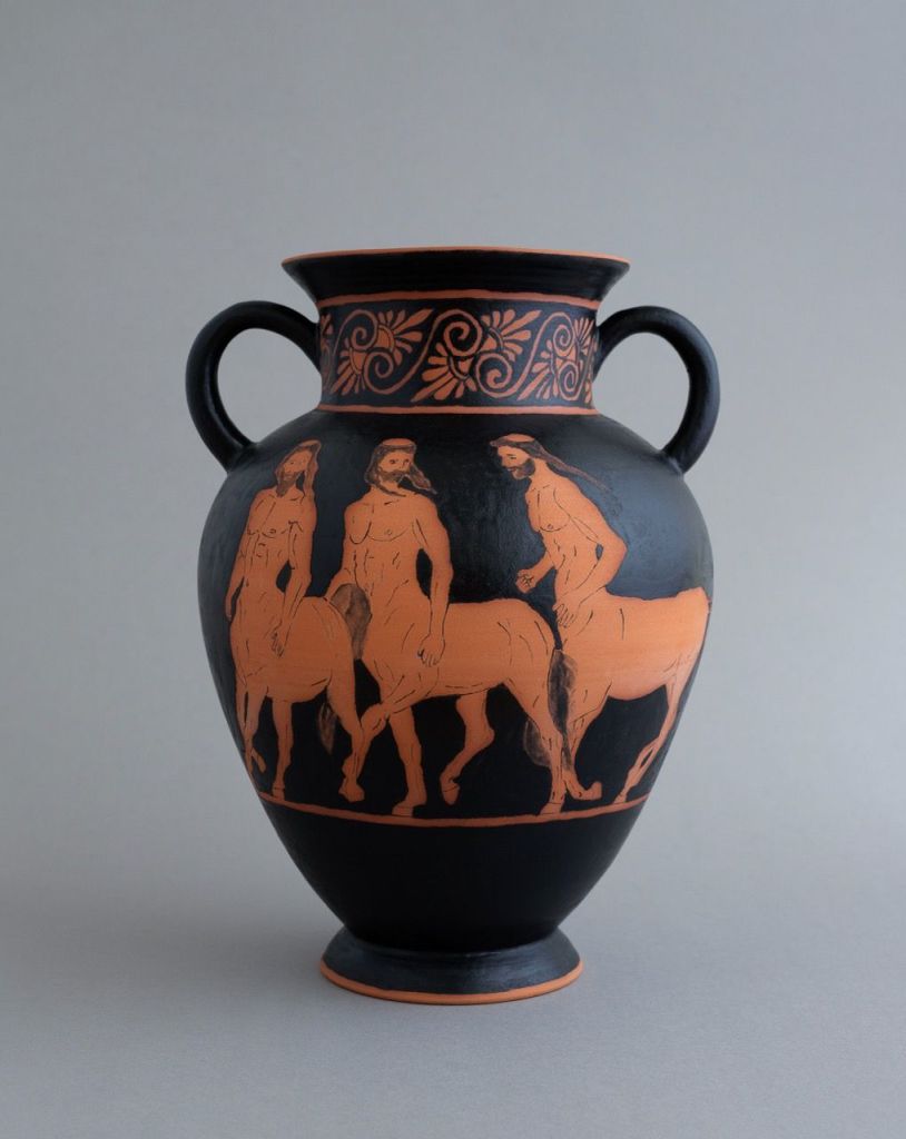 הוא עיטר את הכדים באלמנטים דקורטיביים קלאסיים וצייר עליהם דמויות של קנטאורים: יצורים מהמיתולוגיה היוונית בעלי פלג גוף עליון של אדם ופלג גוף תחתון של סוס, שמזוהים עם פראיות, חוסר רסן ואלימות.