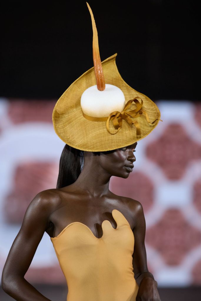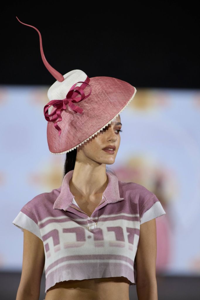 דיאן שוורץ בתצוגת הכובעים של מאור צבר בהשראת סופגניות רולדין צילום עומריהתצוגה בחסות רולדין