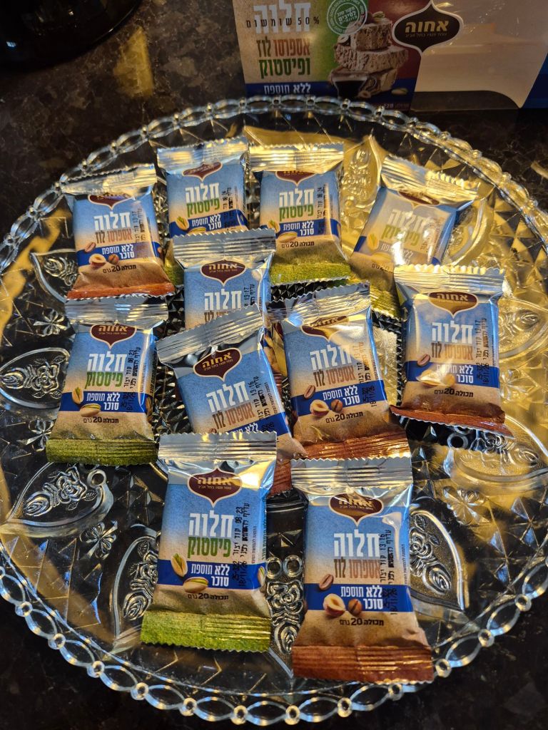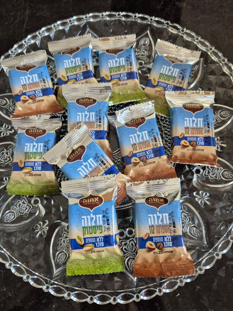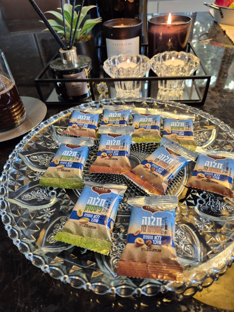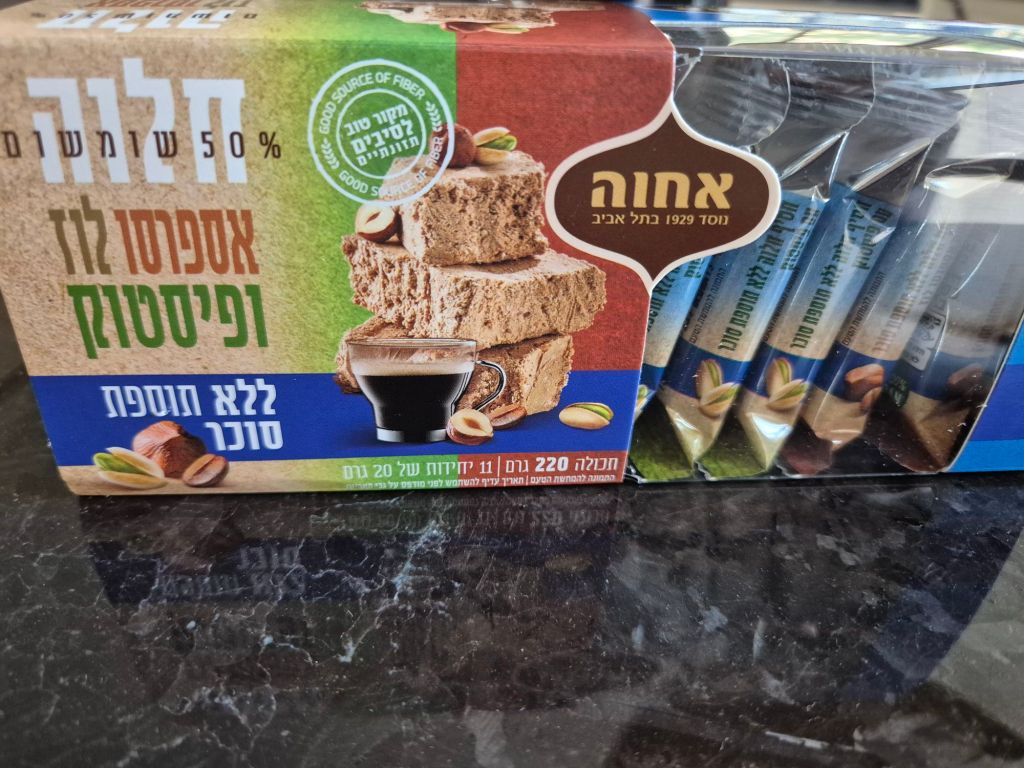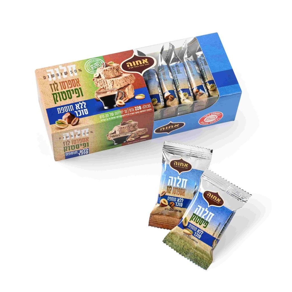 מארז חטיפי חלוה בטעמים אספרסו לוז ופיסטוק ללא סוכר אחוה צילום יעל האן