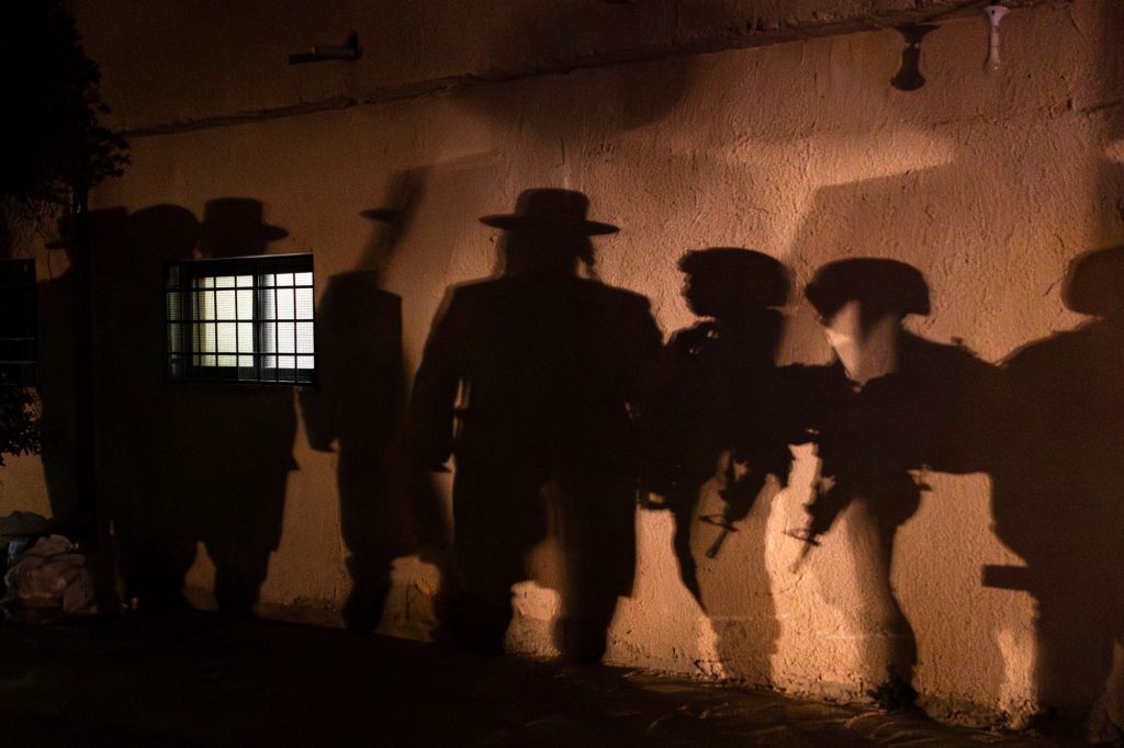 צלליות של חרדים וחיילים בכפר הפלסטיני כיפל חארס. אחת לכמה חודשים מתקיימת בכפר הילולה, שבמהלכה אלפי מתפללים פוקדים מבנה שמזוהה על פי המסורת כקבר יהושע בן נון. בזמן ההילולה מוטל עוצר על הכפר. התושבים נאלצים להסתגר בבתיהם, והמתפללים מסתובבים במקום, מאובטחים במאות חיילים ושוטרי מג"ב.