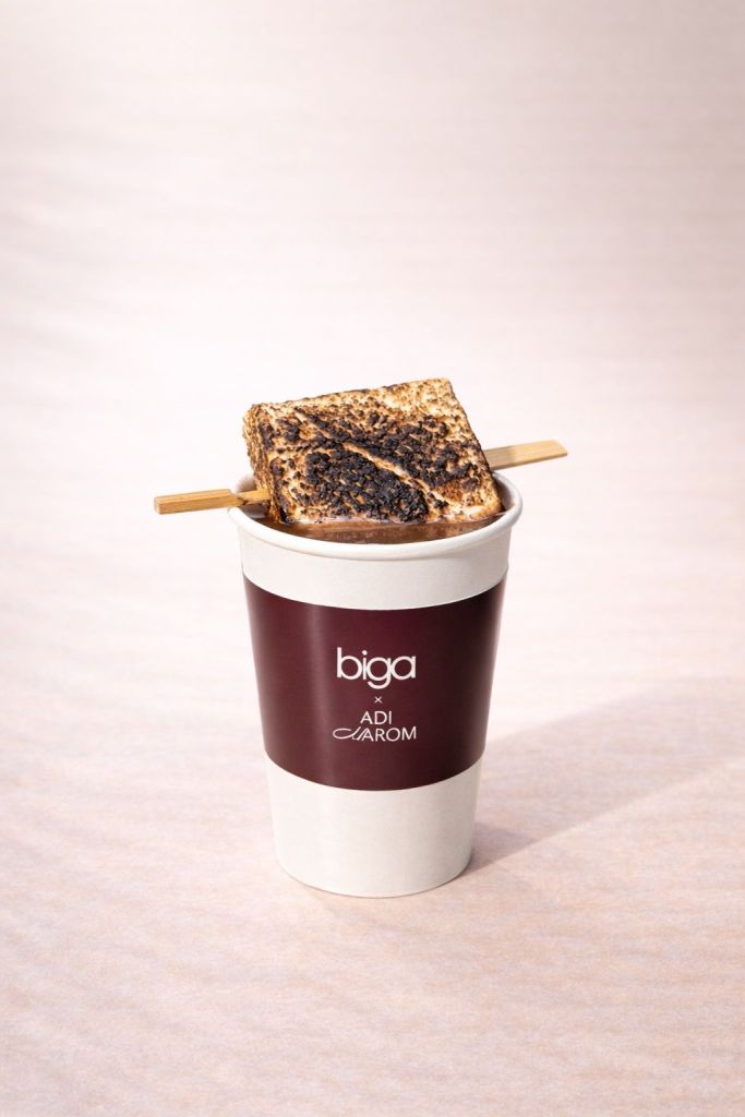 שוקו פרלינים עשיר עם שוקולד חלב, קקאו וקרם חלב, topped בענן מרשמלו ענק ושרוף-34 ₪ צילום שליו טולדנו רשת ביגהלדבריה: "אנו בביגה כל הזמן עם היד על הדופק בכל מה שקשור לטרנדים קולינריים עולמיים ולמה שקורה ברשתות החברתיות. שיתוף הפעולה עם עדי מרום הוא חיבור טבעי – בין מותג שמאמין בחוויית בילוי ואוכל,