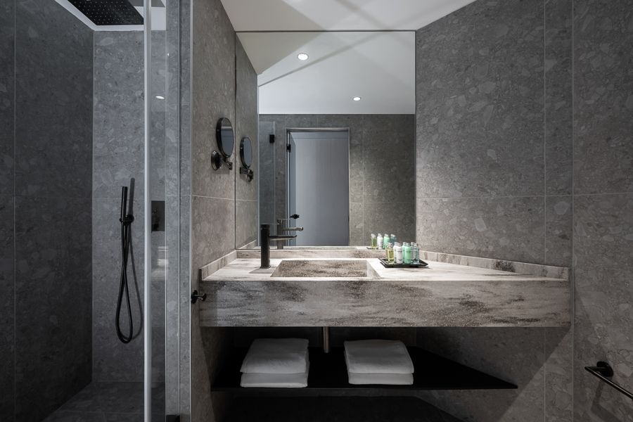 מתחם הספא החדש והגדול של המלון מעוצב כהמשך לקונספט נווה המדבר העירוני. החיבור לטבע מורגש באמצעות קירות מחופים באריחים דמויי עץ, גופי תאורה תלויים ורכים בגוון חם וריהוט מפנק היוצר תחושת מקלט אינטימי. הספא כולל 8 חדרי טיפולים, 4 חדרי אמבט זרמים זוגיים, סאונה רטובה, סאונה יבשה, קבלת פנים עשירה בכיבוד ומתחם מנוחה הפונה לנוף האורבני של תל אביב, חוויה המאפשרת ניתוק אמיתי מההמולה החיצונית שנשקפת מרחוק.