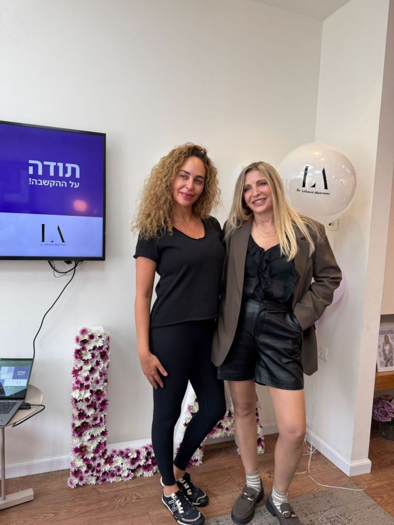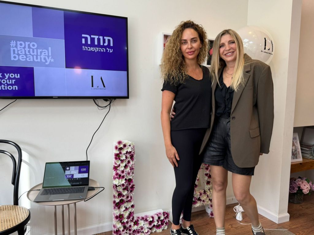 מימין ד"ר אקרמן ומירי בוהדנה צילום יח"צבשיא הכוננות והשמועות לפתיחת מלחמה מול אירן, נערך בחמישי האחרון (15.1) אירוע השקה נוצץ במיוחד בקליניקה בהרצליה פיתוח של רופאת העור הבינלאומית ד”ר להבית אקרמן, לרגל השקת הדור הבא לטיפול אנטי אייג'ינג: אסתטיקה תהליכית.