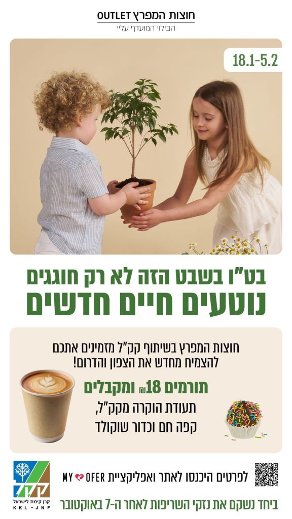 קמפיין חברתי חוצות המפרץ וקק"ל צילום יחצמתחם הקניות והבילוי חוצות המפרץ אאוטלט יוצא בימים אלה, לקראת ט"ו בשבט, חג האילנות, בשיתוף פעולה ייחודי עם קרן קיימת לישראל (קק״ל) במסגרת קמפיין חברתי רחב היקף לשיקום נזקי השרפות שנגרמו ברחבי הארץ בעקבות אירועי ה-7 באוקטובר, בצפון הארץ ובדרום.