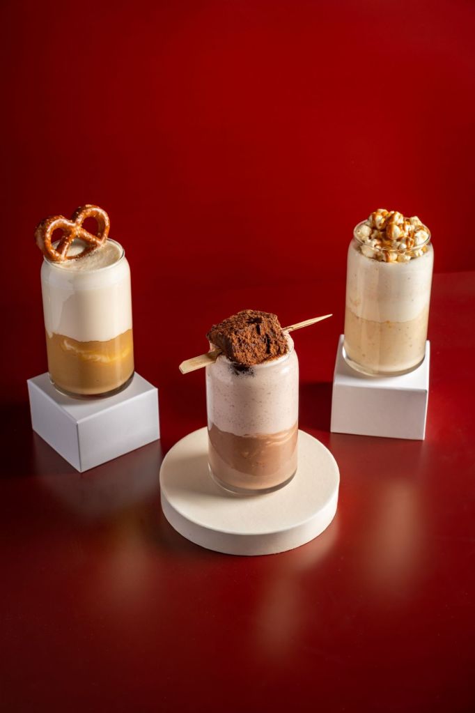 שייק וניל, רוטב בייגלה מלוח, אספרסו, חלב רימילק, גלידת וניל טבעונית ובייגל ענק. ICE POP Brulé – שייק וניל, פופקורן קרמל מלוח, צ’אנקים של פופקורן וניל, גלידת וניל טבעונית, חלב רימילק וקונוס פופקורן מתוק עם לוטוס. ושייק Truffle Waffle – שייק וניל, וופל לואקר שוקולד, גלידת וניל טבעונית, חלב רימילק וטראפלס שוקולד עשיר.